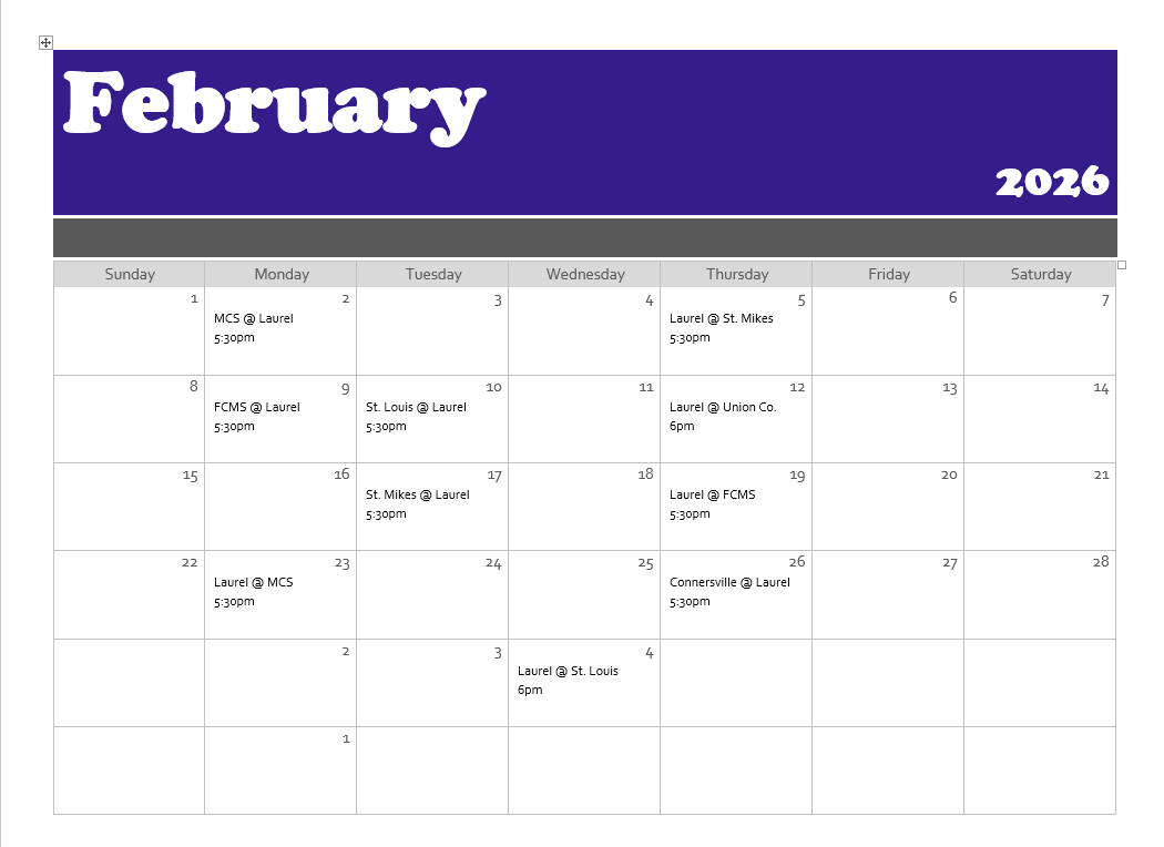 2025-2026 Cheerleaders: Addy Crank, Ziah Swearingen, Ali Madden, Laila Gentry, Whylie Schneider, Jessie Hammond, Harper Halcomb, Reese Peters, Emma Richardson, Finley Nobbe, Harper Grizzell.